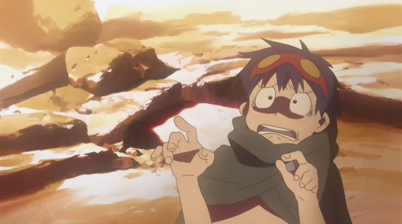 Сотни лет люди живут в глубоких пещерах, в постоянном страхе перед землетрясениями и обвалами. В одной из таких подземных деревень живет мальчик Симон и его «духовный наставник» — молодой парень Камина. Камина верит, что наверху есть другой мир, без стен и потолков; его мечта — попасть туда. Но его мечты остаются пустыми фантазиями, пока в один прекрасный день Симон случайно не находит дрель... вернее, ключ от странного железного лица в толще земли. В этот же день происходит землетрясение, и потолок пещеры рушится — так начинается поистине эпическое приключение Симона, Камины и их компаньонов в новом для них мире: мире под открытым небом огромной Вселенной.