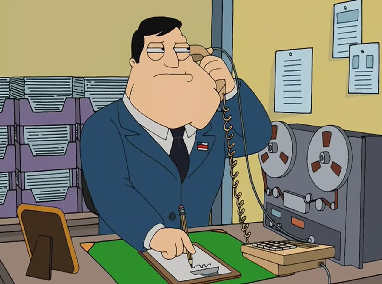 Сюжет мультсериала разворачивается вокруг семьи Смитов. Папа Стэн — агент ЦРУ и республиканец до мозга костей, силен телом, но глуп разумом. Имеет мужественнейший подбородок и всегда выглаженный костюм. Франсин — жена Стэна и мать детей. Типичная домохозяйка. В меру мудрая, в меру глупая. К тому же, не знает своих настоящих родителей. Сын — Стив. У него есть определенные проблемы в общении с противоположным полом (девушки с ним общаются порой, только под дулом табельного оружия отца). Дочь Хэйли — отчаянная либералка, имеет «хиппарские» черты, но хиппи не является, хоть и защищает природу, и принимает легкие наркотики.