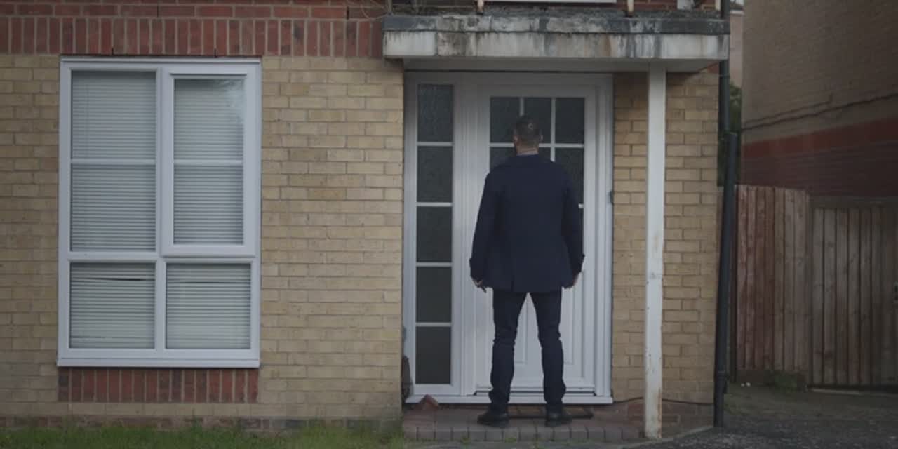 Мужчина на голубой табличке