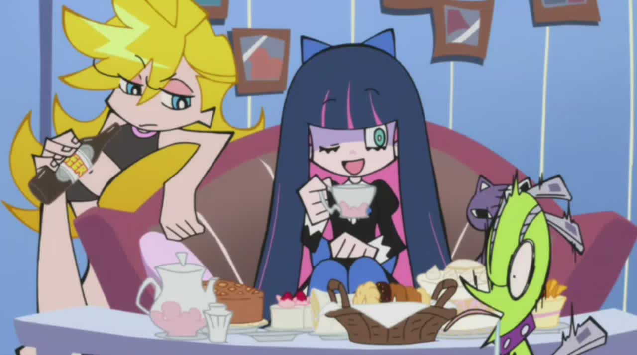 Между небом и преисподней раскинулся огромный Датэн-сити, где миллионы людей живут обычной жизнью – помаленьку грешат, помаленьку страдают, в меру сил ищут счастья и удовольствия. Вот только в людскую жизнь постоянно вмешиваются злобные духи, на которых нет решительно никакой управы – кроме горячей молитвы, разумеется. И Небеса откликнулись, послав на помощь страждущим двух бесстрашных сестер из ангельских войск вместе с мудрым наставником…Вообще-то, сестер-ангелочков из Рая просто выкинули за безобразное поведение - и было за что. Старшая, Панти (кличка Трусики) – законченная нимфоманка и богохульница; младшая, Стокинг (она же Чулочек) – лентяйка и сладкоежка в образе «готической лолиты». К тому же сестренки в тяжкой форме страдают садомазохизмом, сквернословием и полным небрежением к морали и частной собственности. Но Бог милостив – он дал изгнанницам шанс вернуться в райские кущи, если те изведут в городе злобных духов, попутно заработав энное количество небесной валюты.Так что теперь Панти и Стокинг прочно встали на путь исправления и сотрудничества с администрацией в лице их куратора Гартербельта (он же святой отец Поясок). Превращая трусики в пистолеты, чулки – в катаны, а милую зверушку Чака – вообще черт знает во что, героини грудью встали на защиту Датэн-сити и комедийно-абсурдистского жанра!