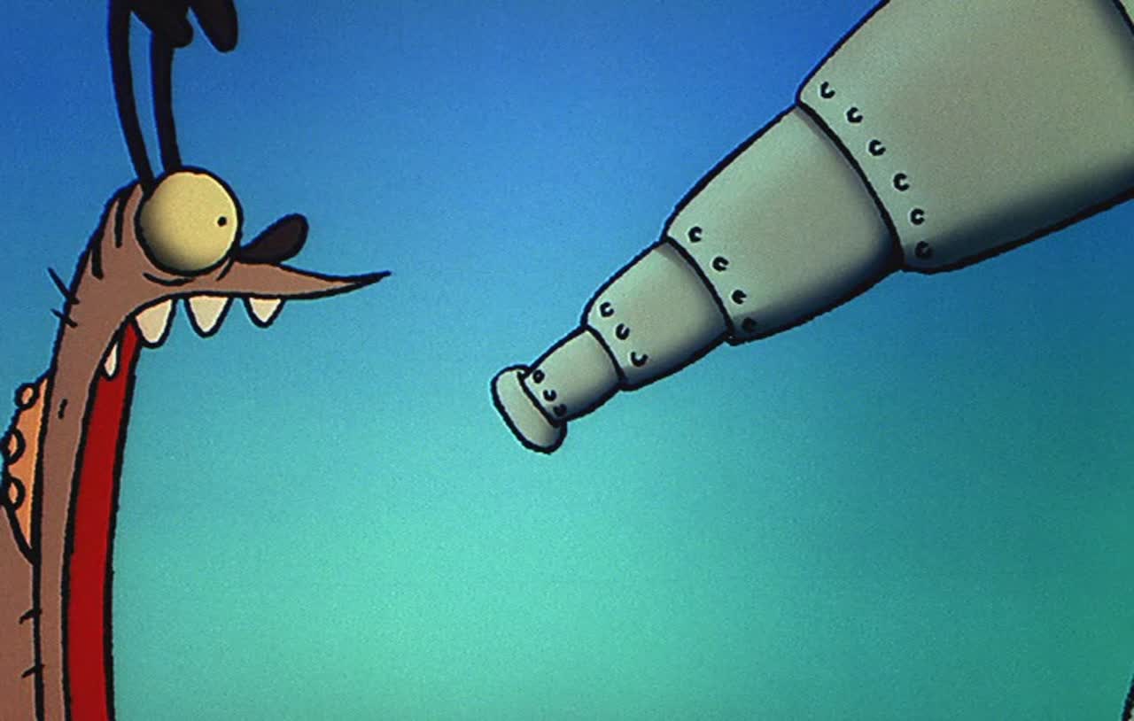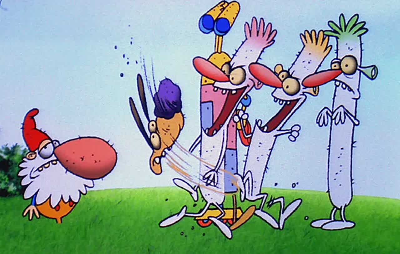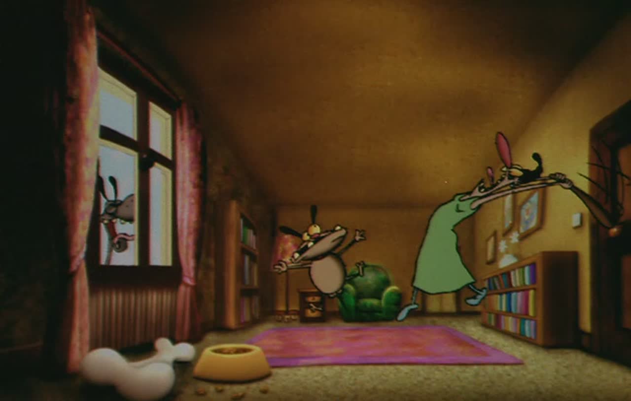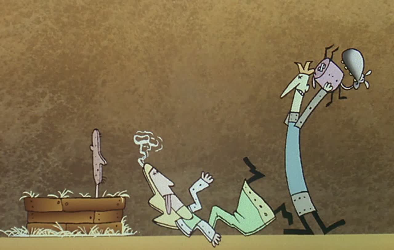 Мультяшные персонажи здесь просто сумасшедшие (без исключений) - фиолетовый кот, который говорит "мяу", и уродливая коричневая собака, которая говорит "ау", и инопланетяне, которые говорят "блех", и некоторые люди (или другие животные), которым очень нравится кричать, бить других и шуметь.
