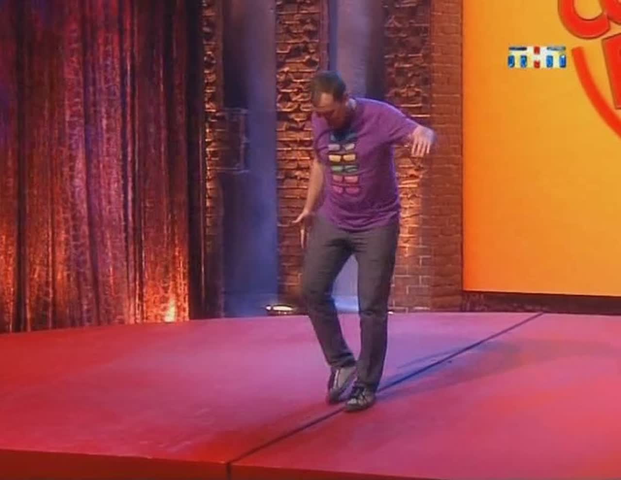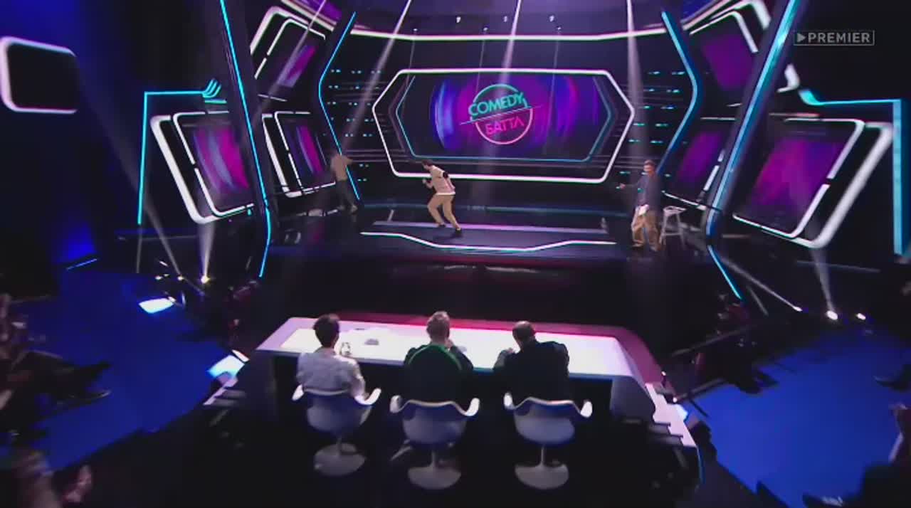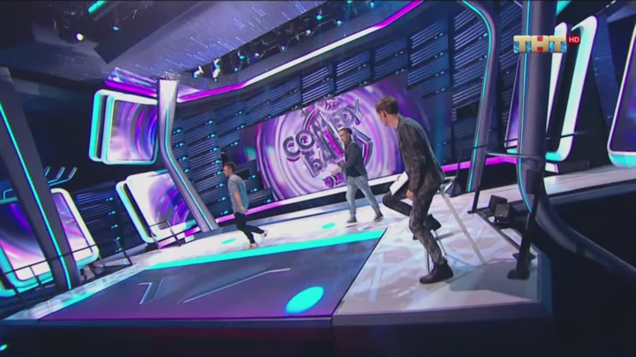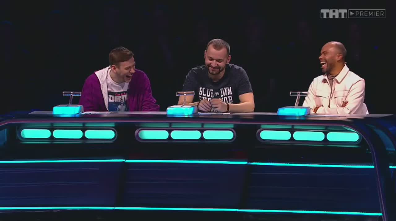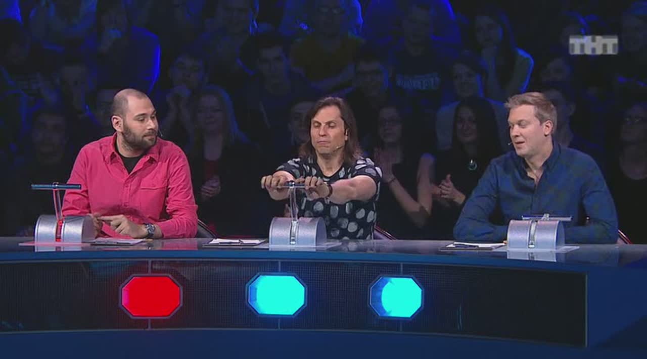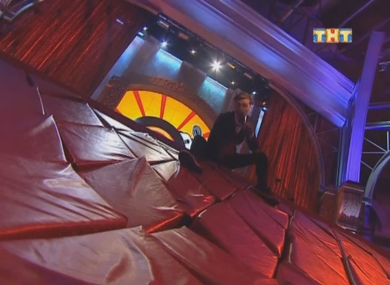 Юмор рождается на сцене, которая, кажется, сама решает, кто достоин на ней стоять. Если выступление участнику не удается, пол под его ногами наклоняется вперед. Сначала немного, но вот еще одна шутка не прошла, и угол становится круче, а после очередной неудачи голова занята совсем не смешными мыслями - удержаться бы. И это не единственный технический сюрприз, который ждет претендентов на победу: за плохие шутки участники получают по пятой точке специальной механической «лапой».