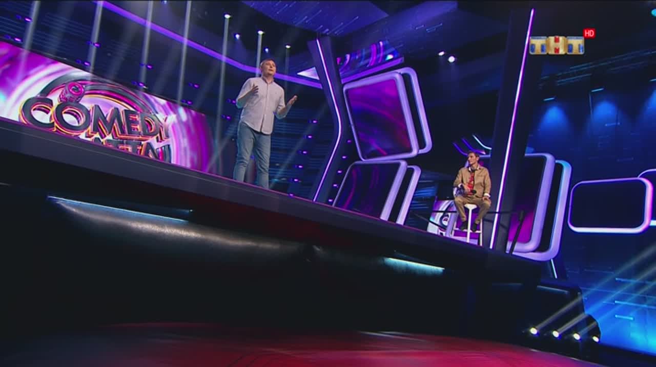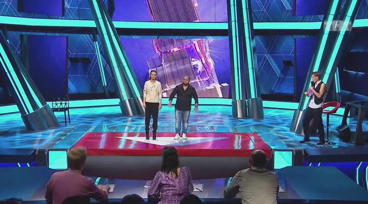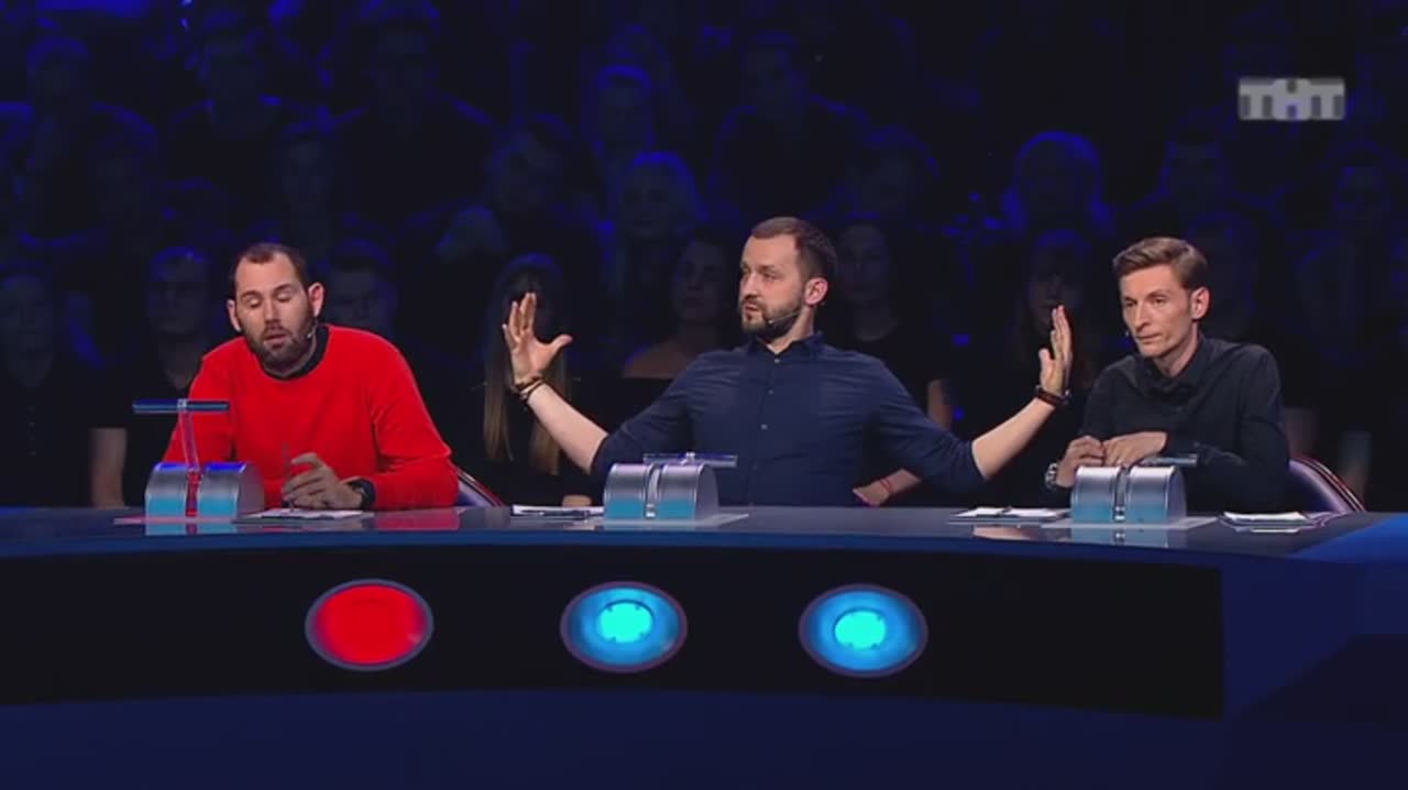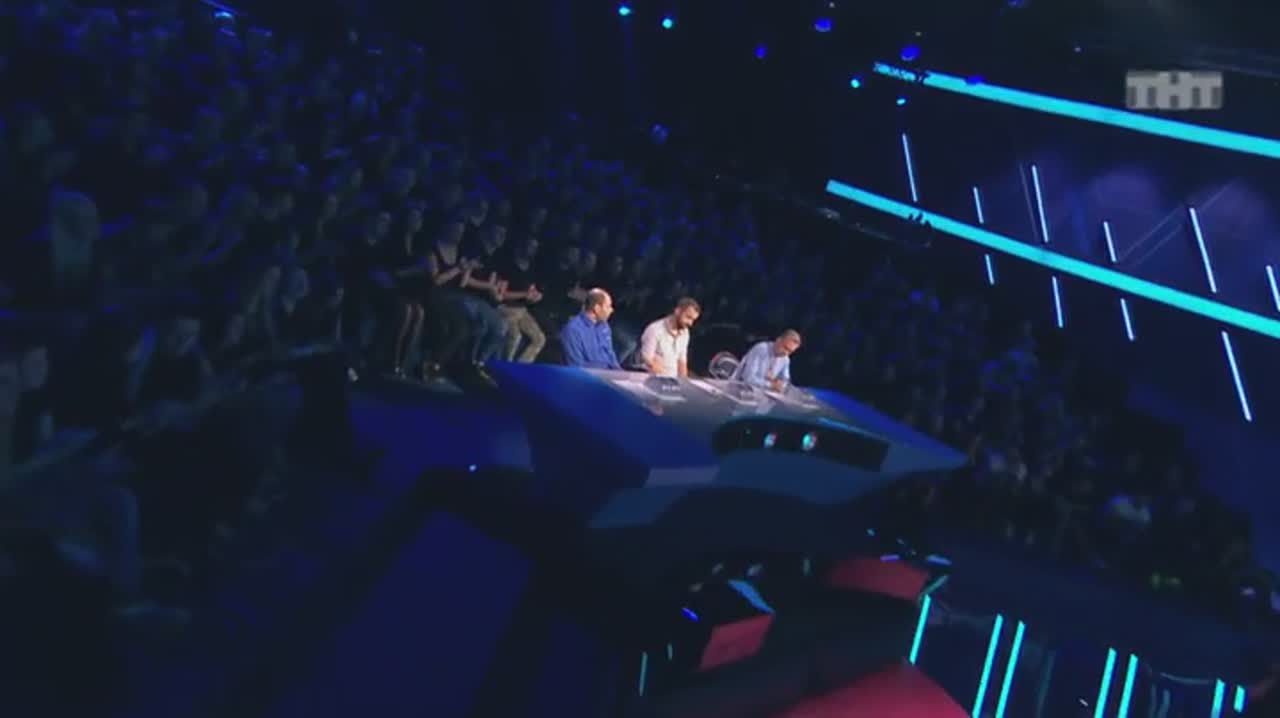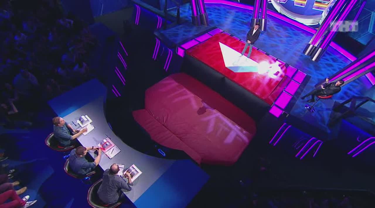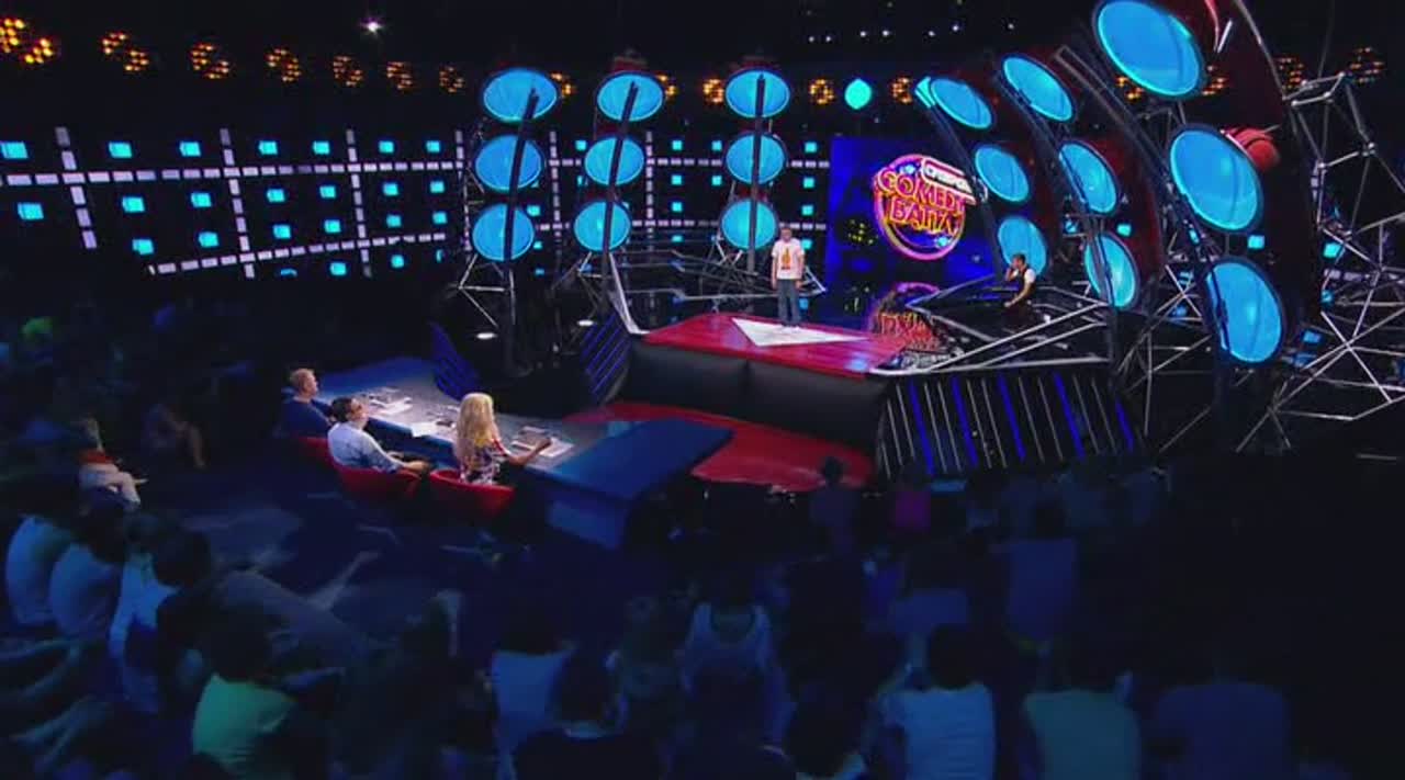 Юмор рождается на сцене, которая, кажется, сама решает, кто достоин на ней стоять. Если выступление участнику не удается, пол под его ногами наклоняется вперед. Сначала немного, но вот еще одна шутка не прошла, и угол становится круче, а после очередной неудачи голова занята совсем не смешными мыслями - удержаться бы. И это не единственный технический сюрприз, который ждет претендентов на победу: за плохие шутки участники получают по пятой точке специальной механической «лапой».