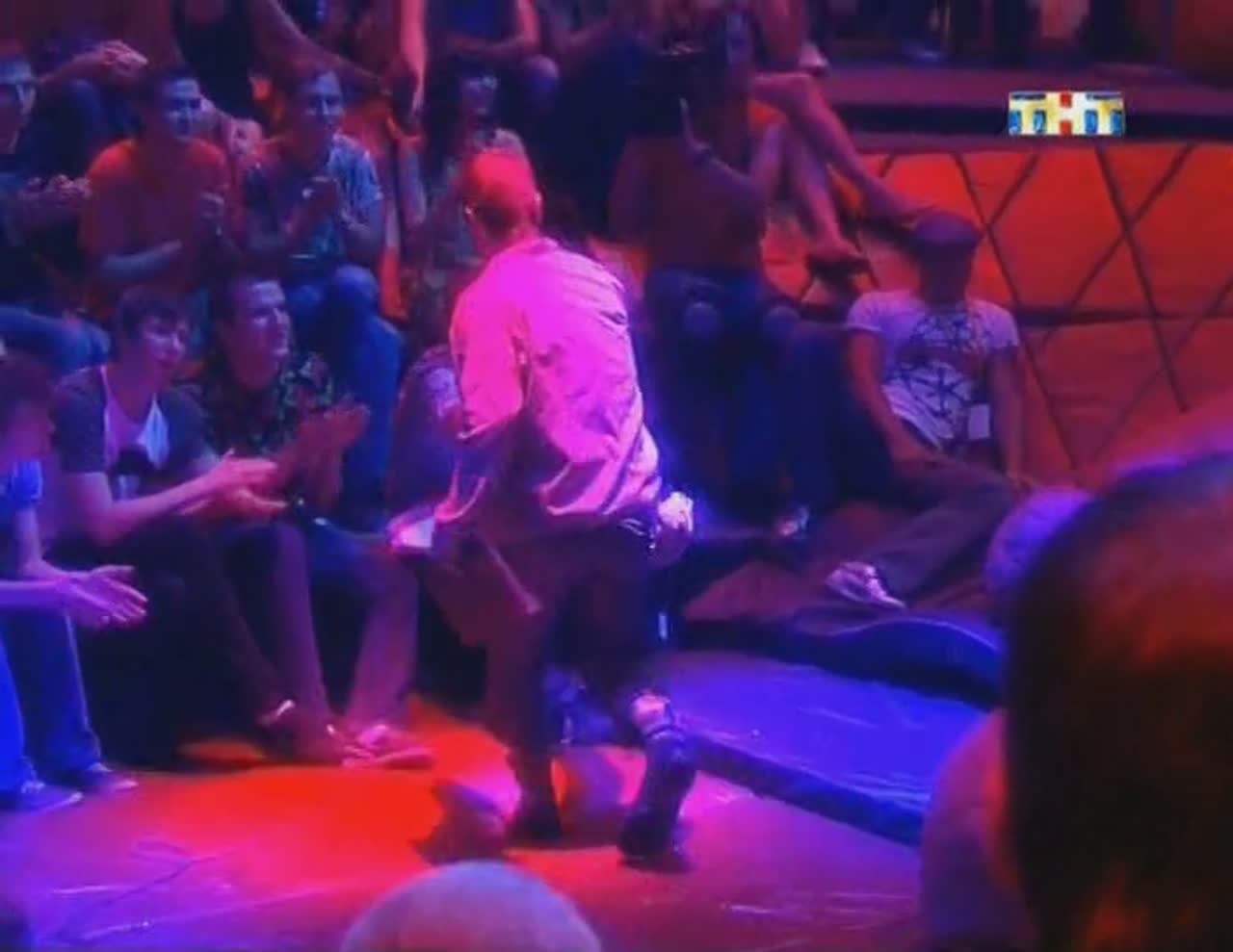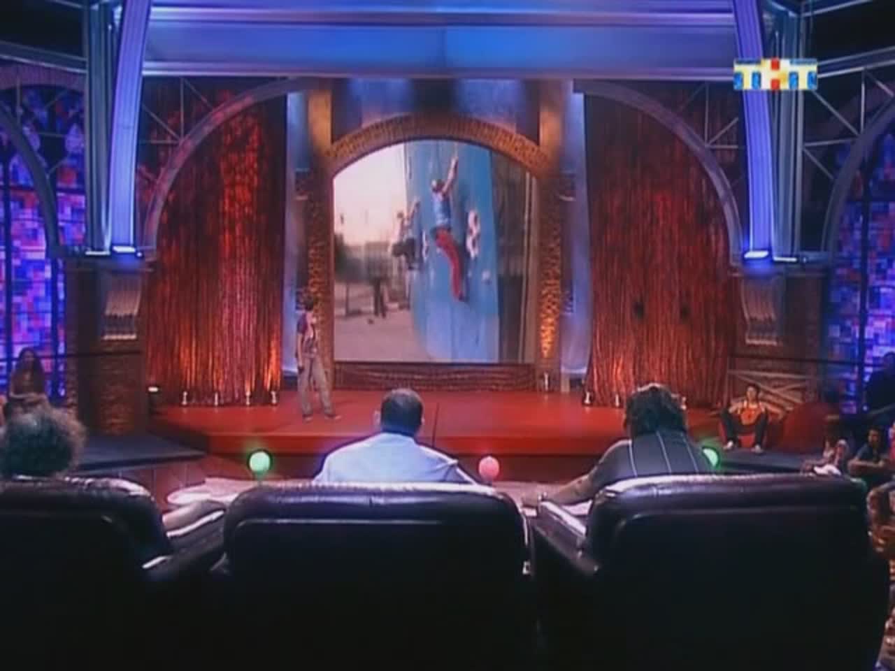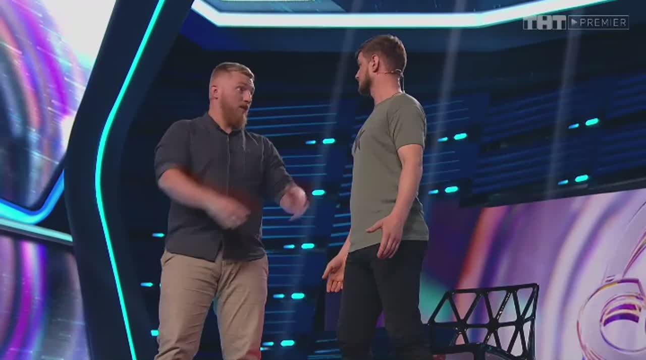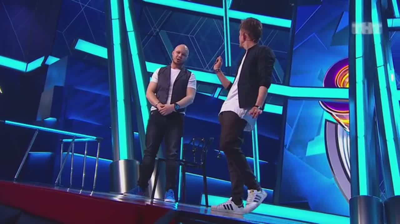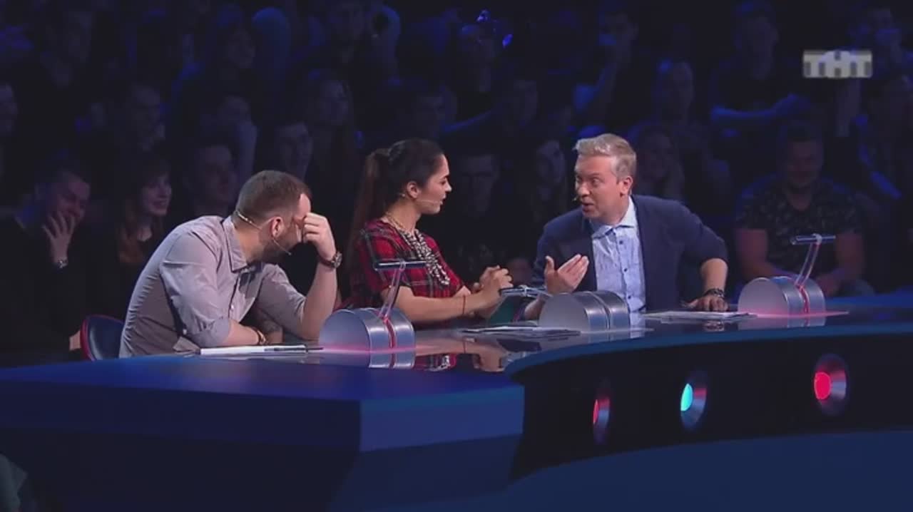 Юмор рождается на сцене, которая, кажется, сама решает, кто достоин на ней стоять. Если выступление участнику не удается, пол под его ногами наклоняется вперед. Сначала немного, но вот еще одна шутка не прошла, и угол становится круче, а после очередной неудачи голова занята совсем не смешными мыслями - удержаться бы. И это не единственный технический сюрприз, который ждет претендентов на победу: за плохие шутки участники получают по пятой точке специальной механической «лапой».