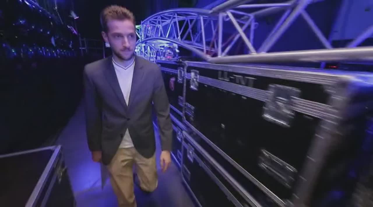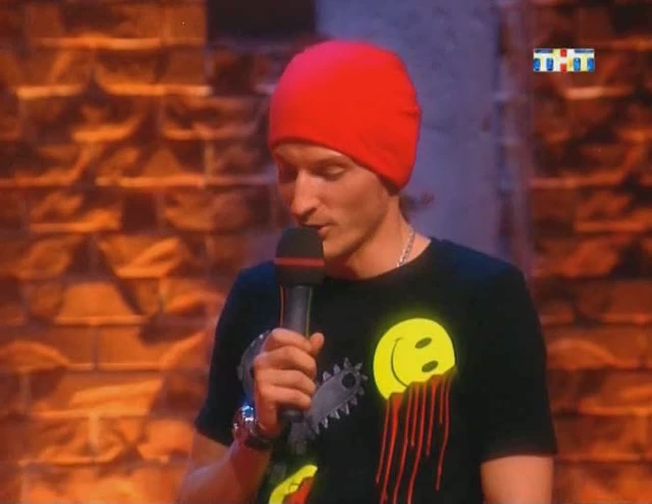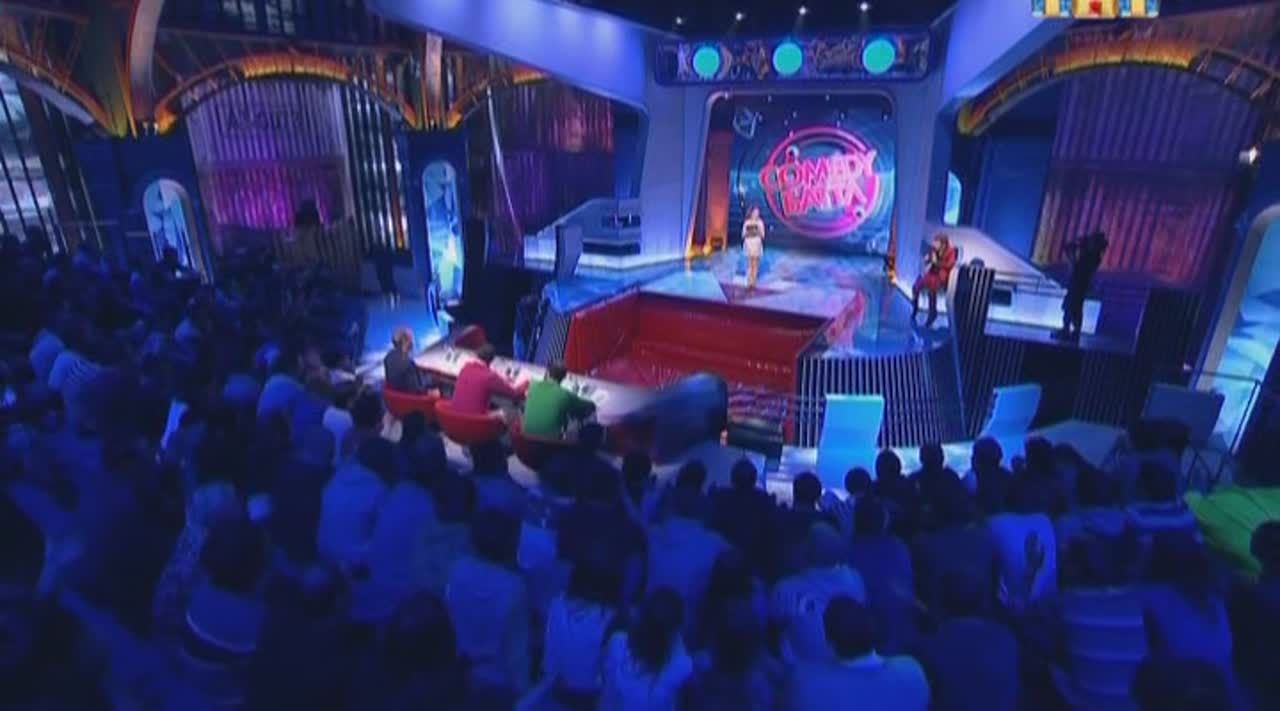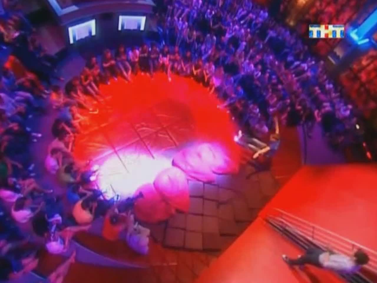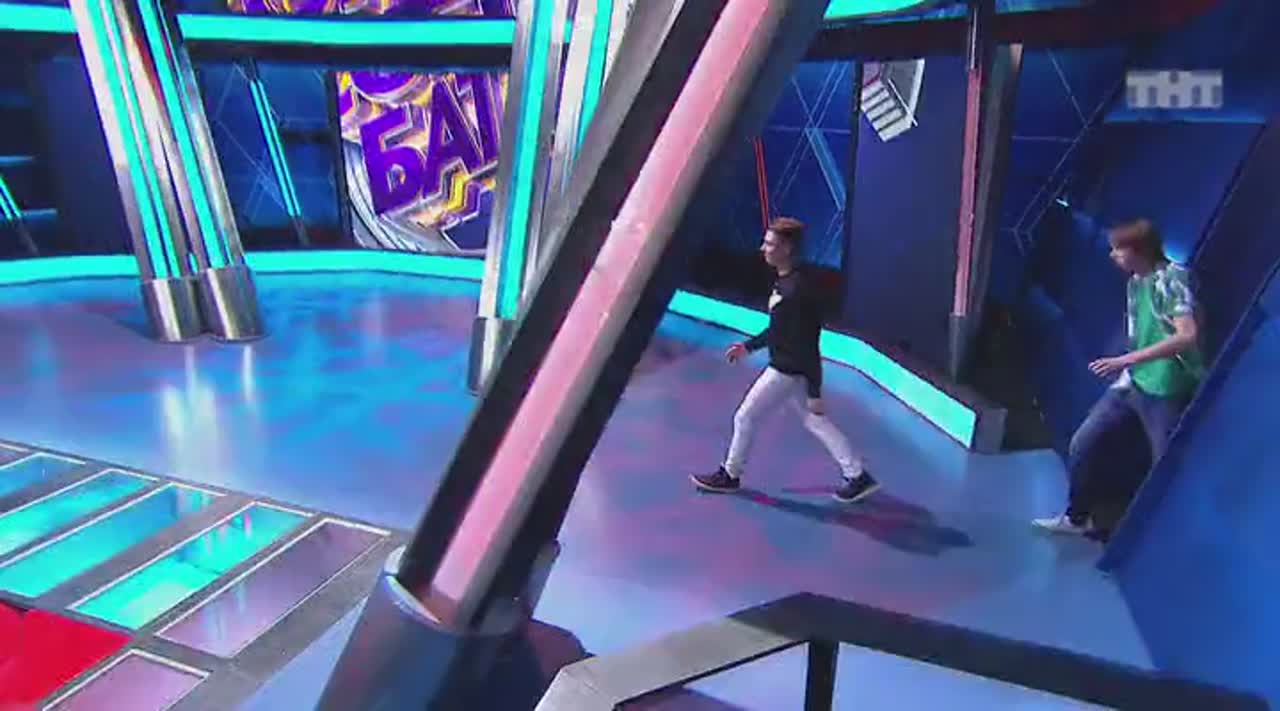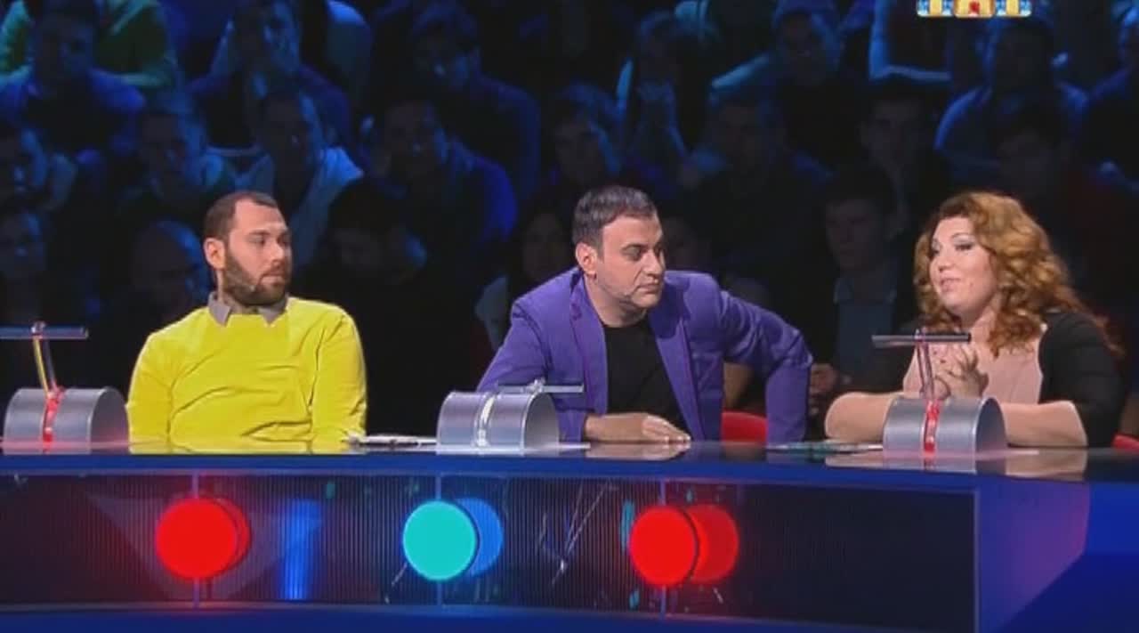 Юмор рождается на сцене, которая, кажется, сама решает, кто достоин на ней стоять. Если выступление участнику не удается, пол под его ногами наклоняется вперед. Сначала немного, но вот еще одна шутка не прошла, и угол становится круче, а после очередной неудачи голова занята совсем не смешными мыслями - удержаться бы. И это не единственный технический сюрприз, который ждет претендентов на победу: за плохие шутки участники получают по пятой точке специальной механической «лапой».