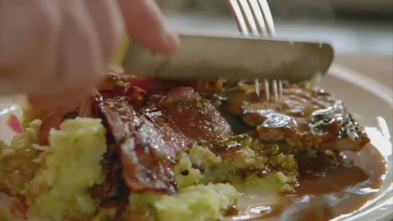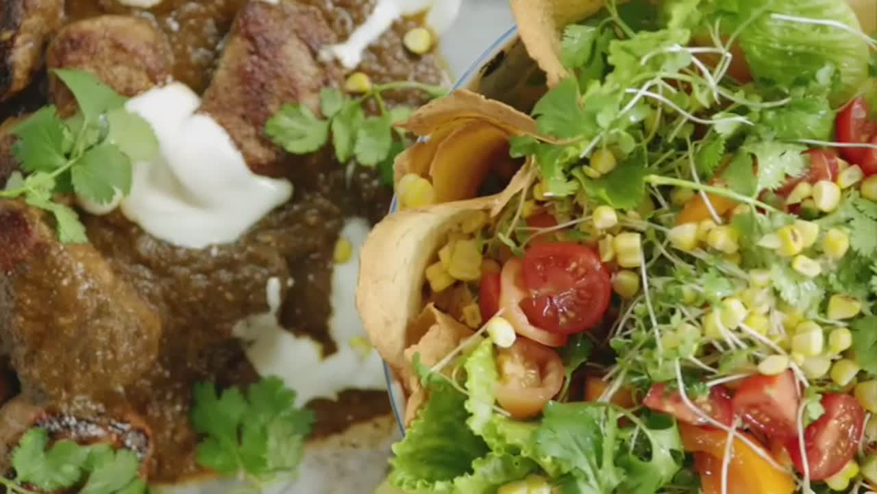 Свинина с маринадом и салат из кукурузы на гриле, быстрый суп министроне, припущенная курица и соус сальса ве